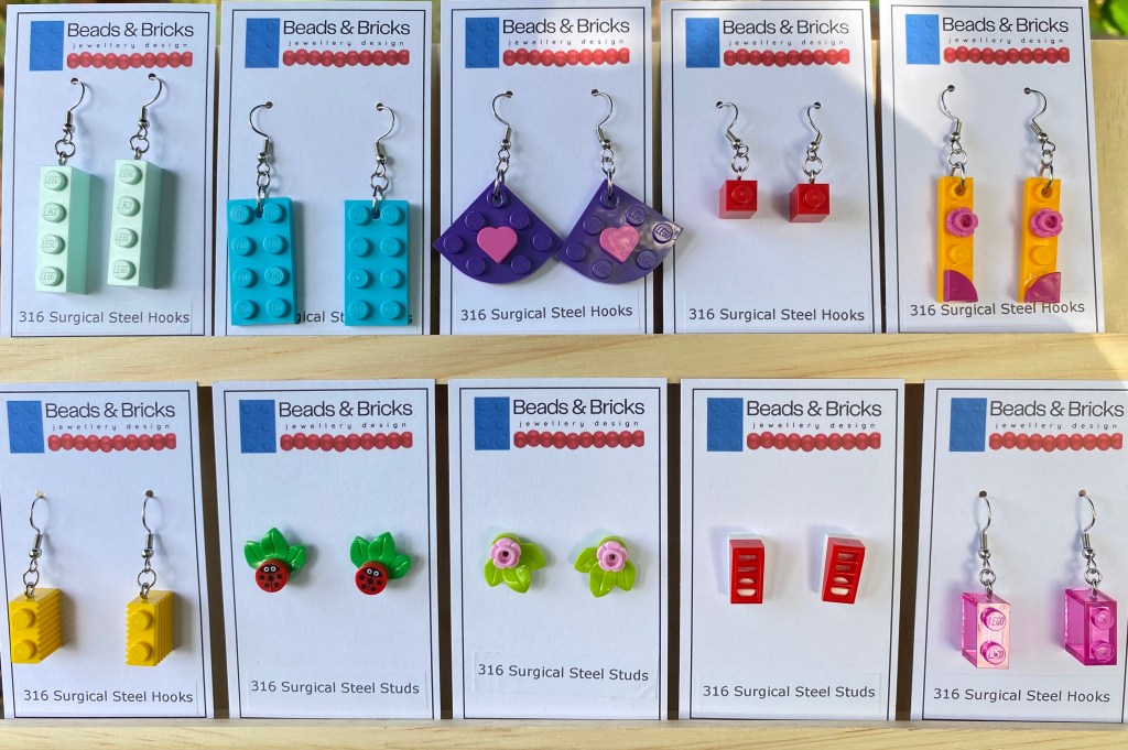 Welcome to Beads & Bricks! We create handmade fashion jewellery in our studio in northern Sydney. Many of our designs are one-off or small batch creations. Our Fun & Funky range uses high quality toy construction bricks and components, while our Floral & Fabulous collection features pretty and colourful modern jewellery pieces. Our Christmas collection is Festive & Fancy and for Halloween fun, explore our Spooky & Stylish range. Our earring hooks and studs are all 304 stainless or 316 surgical steel to keep sensitive ears happy.